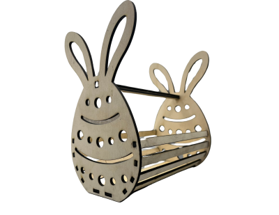 Drewniany mały koszyczek wielkanocny „Pisanka z uszami” – dekoracja w kształcie zająca