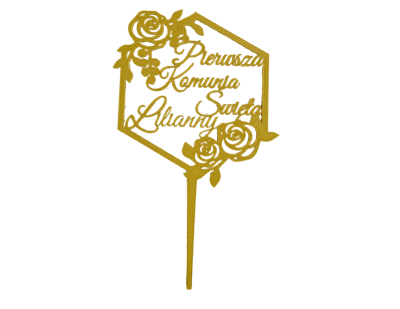 Topper Komunijny 25 cm • Złoty z Imieniem • Elegancka Dekoracja Tortu na Pierwszą Komunię