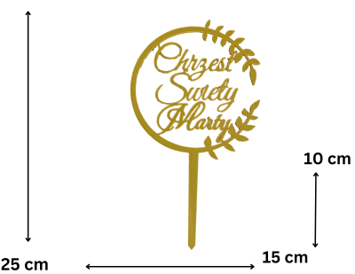 Topper Komunijny 25 cm • Złoty • Elegancka Dekoracja Tortu na Pierwszą Komunię