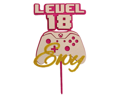 Topper na tort 🎂 urodziny dla gamerki z kontrolerem w dłoni PERSONALIOWANY wybierz imię kolr lub liczbę